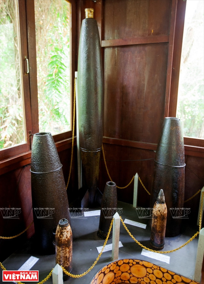 Une ancienne casemate.     Des objets exposés au site de Xeo Quyt.