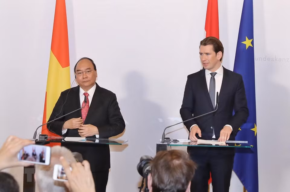 Le chancelier Sebastian Kurz et le Premier ministre Nguyên Xuân Phuc à Vienne.