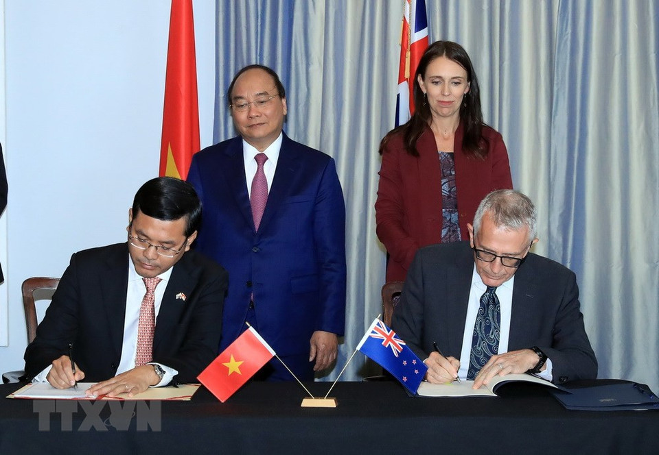 Entretien entre le Premier ministre vietnamien Nguyen Xuan Phuc et son homologue néo-zélandaise Jacinda Ardern.
