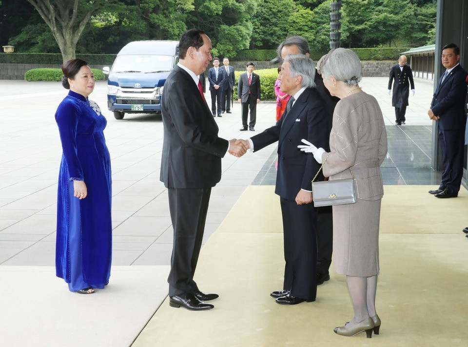 L’Empereur Akihito (à droite) accueille le Président Trân Dai Quang.