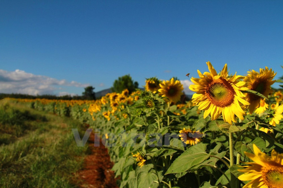 Le champ de tournesol de la société Dalat Milk dans la province de Lam Dong (Hauts Plateaux du Centre) offre aux visiteurs une vue panoramique splendide.