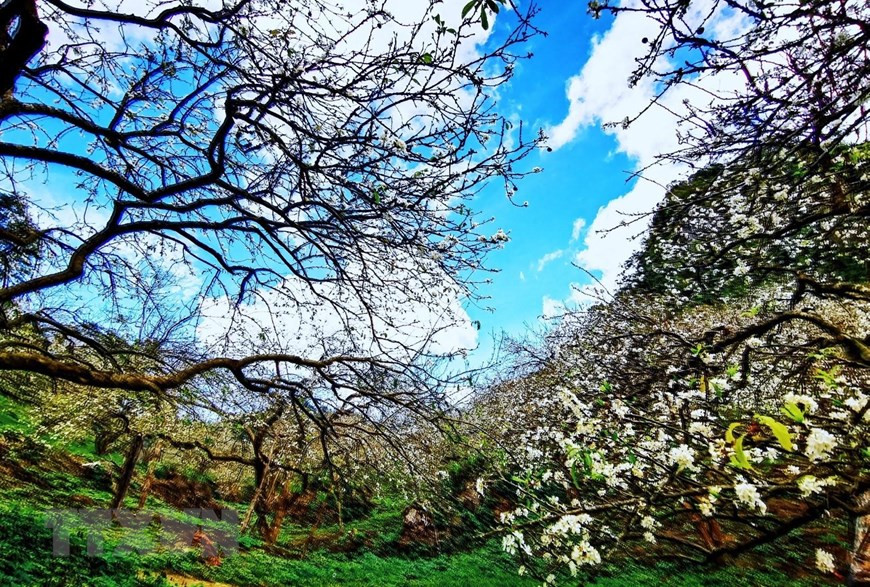 En venant dans la vallée de Mu Nau dans le chef-lieu de Moc Chau, province montagneuse de Son La (Nord), les visiteurs peuvent admirer la floraison des pruniers.