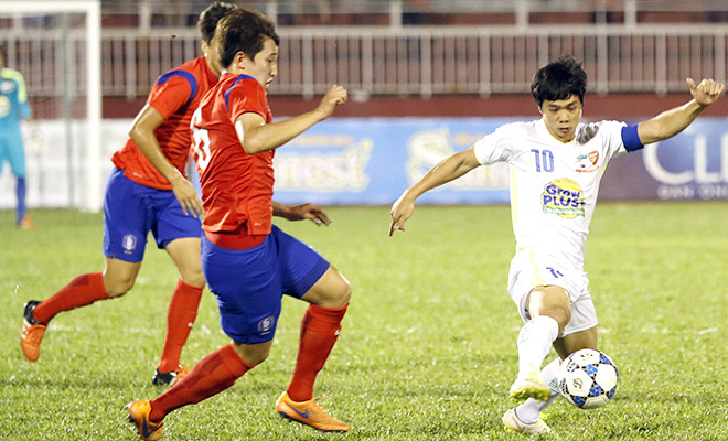 Le joueur Cong Phuong (droite), a fini meilleur buteur de la Coupe internationale de football U21 du journal Thanh Nien. Photo : InternetHo Chi Minh-Ville (VNA) – L’équipe Hoang Anh Gia Lai a conservé son titre de champion de la Coupe internationale de football U21 du journal Thanh Nien, après s'être imposé 2-0 en finale face à la sélection sud-coréenne U19.