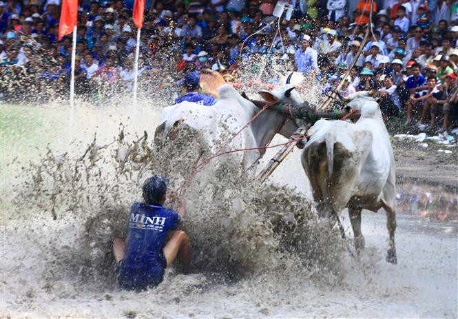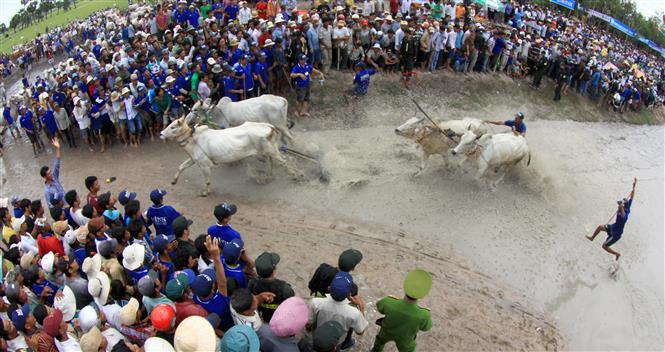 Tous les ans, les Khmers dans la province d’An Giang (Sud) organisent une grande course de bœufs. Cette fête khmère attire des dizaines de milliers de spectateurs enthousiastes.
