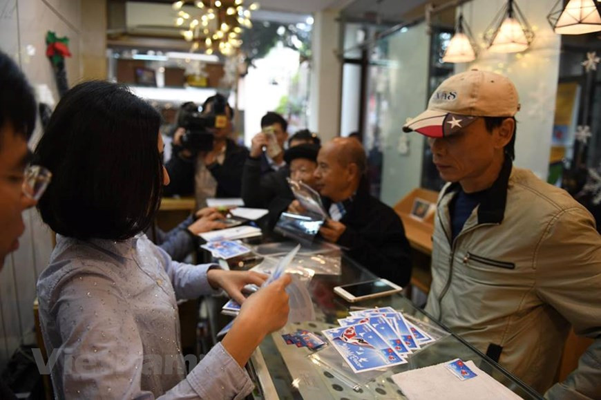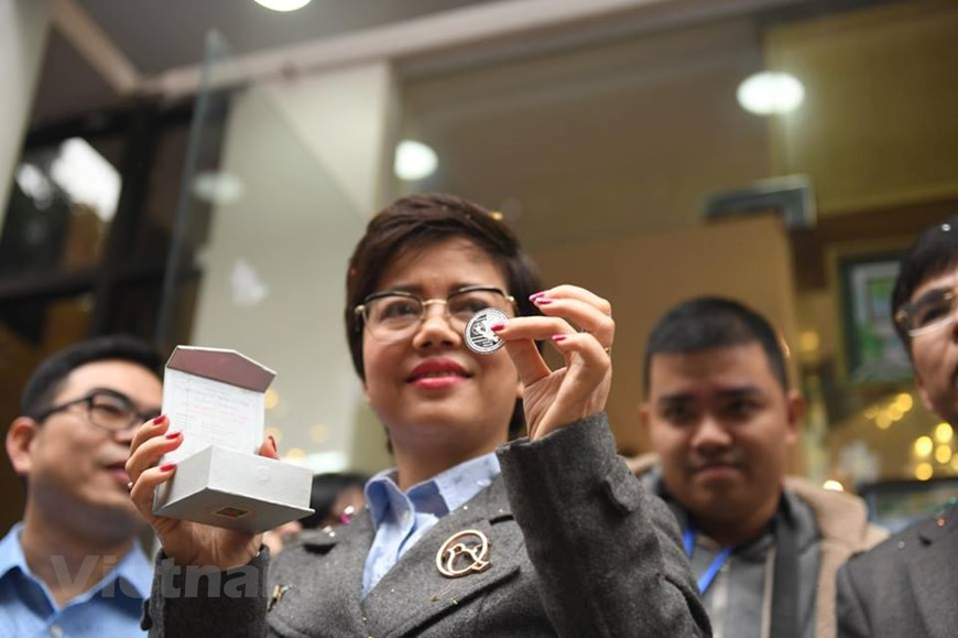 Les pièces de monnaie commémorative ont commencé à être vendues à partir 9h25 mais de nombreuses personnes attendent devant le siège de la compagnie Vietnam Stamp à partir de 6h00.