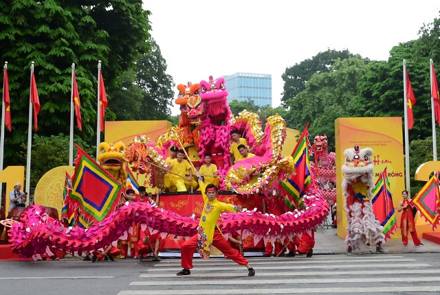 Grâce à des spectacles de danse du dragon, les visiteurs ont pu admirer de glorieux événements historiques et traditionnels du pays, des images de la terre et des hommes de Hanoi, des 1010 ans d’histoire de Thang Long - Hanoi, de l’intégration et du développement de la capitale vietnamienne.
