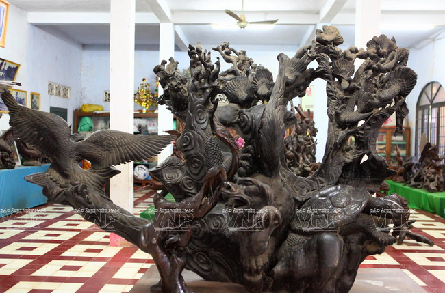 Les artisans de la pagode transforment des souches d'arbres en œuvres d'art authentiques.