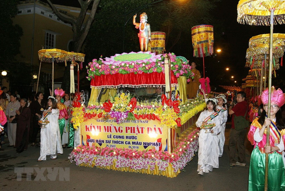En l’honneur du 2562e anniversaire de la naissance de Bouddha, l’Eglise bouddhique du Vietnam a tenu lundi 28 mai une grande cérémonie de procession des reliques de Bouddha dans les rues de Hanoï.