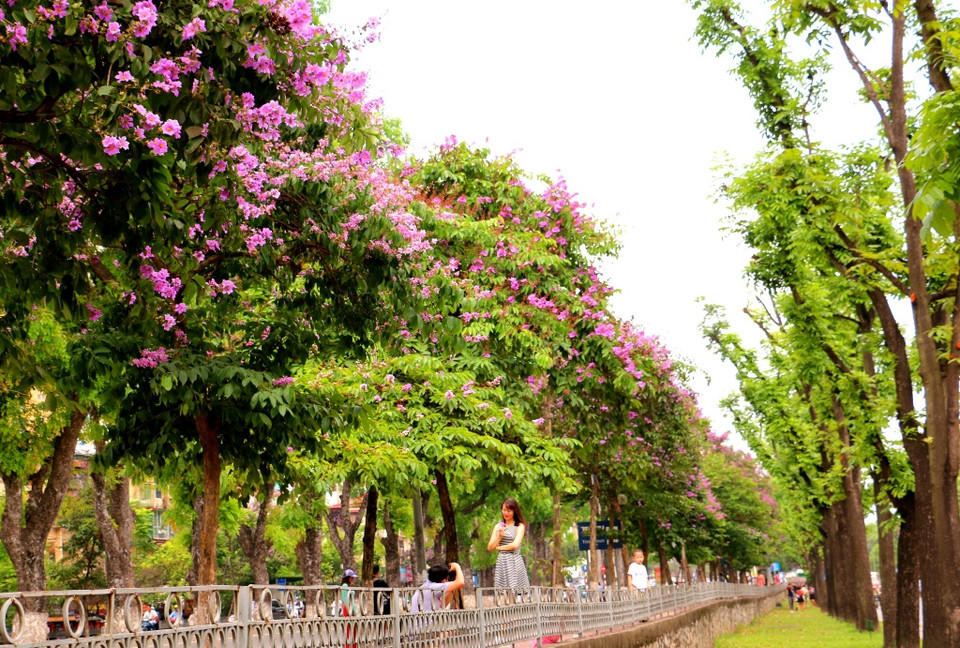 Début mai, on voit partout dans les rues de la capitale Dao Tan, Hoang Quoc Viet, Kim Ma, Tran Thai Tong, Nguyen Thai Hoc, Tho Nhuom, Đinh Tien Hoang… la couleur mauve des fleurs de Bang Lang qui fleurissent souvent en grappes de 20 cm à 40 cm. Leur feuillage est épais et luisant.
