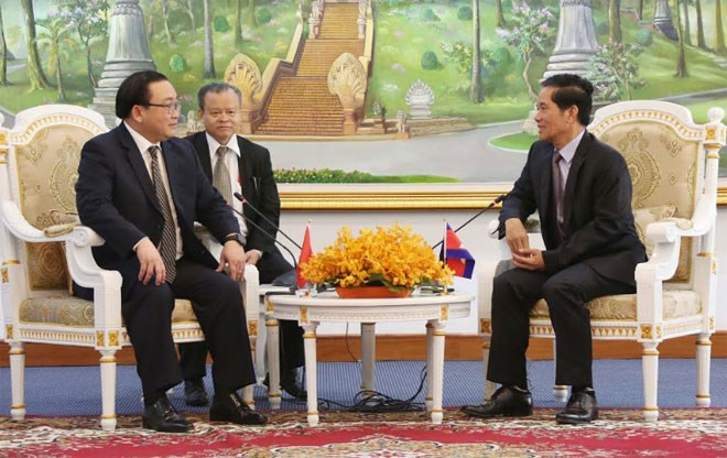 Hoang Trung Hai a déclaré que sa visite vise à renforcer et à développer la solidarité et l'amitié entre les deux pays et les deux capitales en particulier, et s'inscrit dans le cadre des activités de célébration du 50ème anniversaire des relations diplomatiques Vietnam-Cambodge.