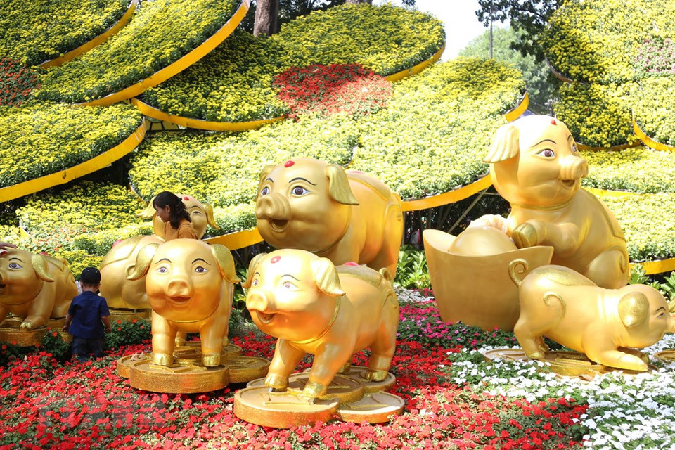 La Fête des fleurs du printemps 2019 a ouvert ses portes le 31 janvier au parc Tao Dan, à Ho Chi Minh-Ville. Le Cochon est la mascotte de l'année 2019.