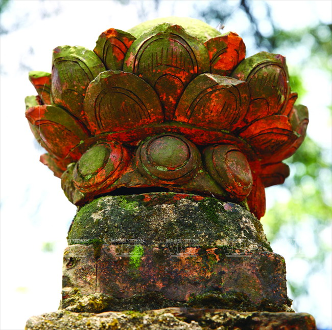 Briques en forme de fleur de lotus et motifs portant l’empreinte de l'école Truc Lâm - Yên Tu sur le stupa Thiên Dinh.