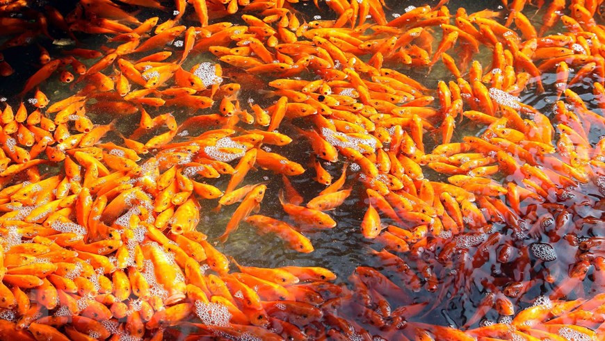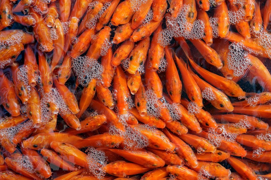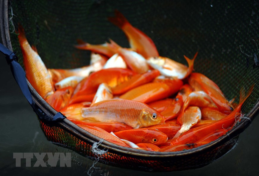 Les habitants du village de Thuy Tram, dans la commune de Tuy Loc, district de Cam Khe, province de Phu Tho, récoltent des carpes pour le 23e jour du 12e mois lunaire.