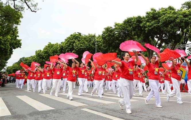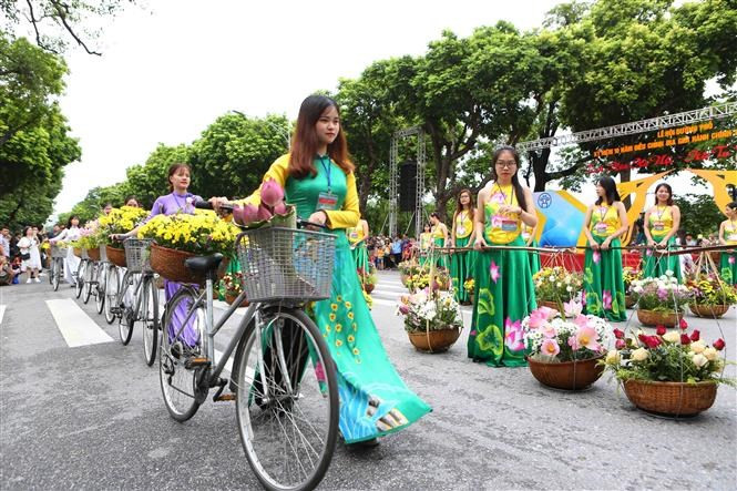Les participants ont défilé autour du lac Hoan Kiem, traversant la place Ly Thai To, le temple Ba Kieu, le restaurant Luc Thuy, la place Dong Kinh Nghia Thuc, le carrefour Ba Kieu-Hang Khay et le croisement Hang Bai-Hang Khay.