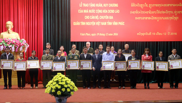 Le Laos honore des volontaires et experts de Vinh Phuc ảnh 1Cérémonie de remise de l’ordre et de la médaille aux 305 cadres, soldats, experts et volontaires natifs de la province de Vinh Phuc. Photo: VNA