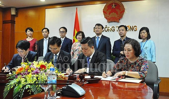 La signature du mémorandum de coopération entre le ministère de l’Industrie et du Commerce et MM Mega Market Vietnam. Photo : https://congthuong.vn/Hanoï (VNA) – Le ministère de l’Industrie et du Commerce a signé le 8 août à Hanoï un mémorandum de coopération avec la SARL MM Mega Market Vietnam.