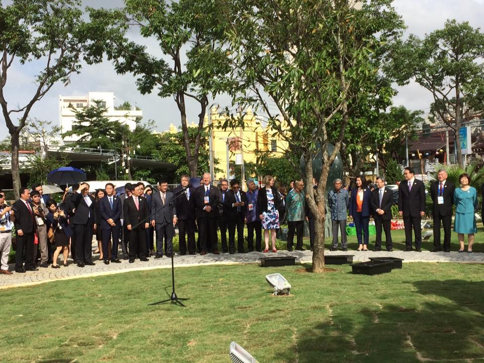 Des délégués plantent des arbres de souvenir au Parc de l'APEC.