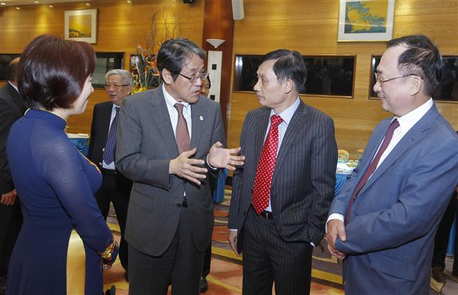 Des invités étrangers rencontrent des diplomates vietnamiens.