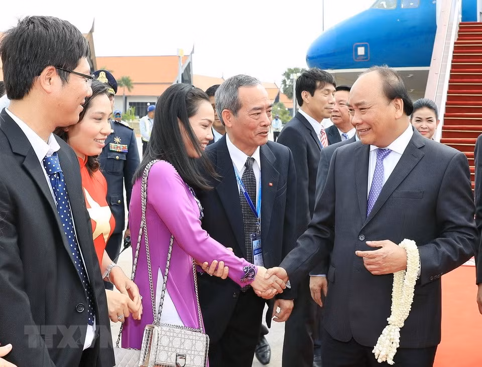 Le Premier ministre Nguyen Xuan Phuc et sa délégation de haut rang du Vietnam à l'aéroport international de Siem Reap.