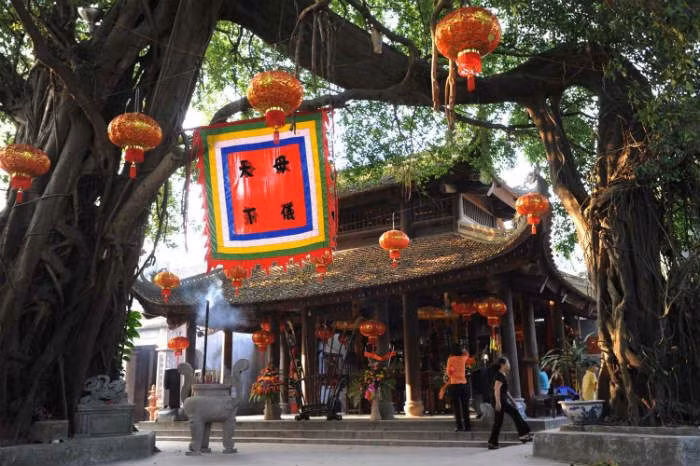 Le temple s’étend sur une superficie de 3.000 m² à proximité du fleuve Rouge. Il est dédié au culte de Yang Gui Fei, l’épouse de second rang d’un empereur chinois de la dynastie des Song. Construit en 1279 sous le règne du roi Trân Nhân Tông, il a fait l’objet de plusieurs restaurations.