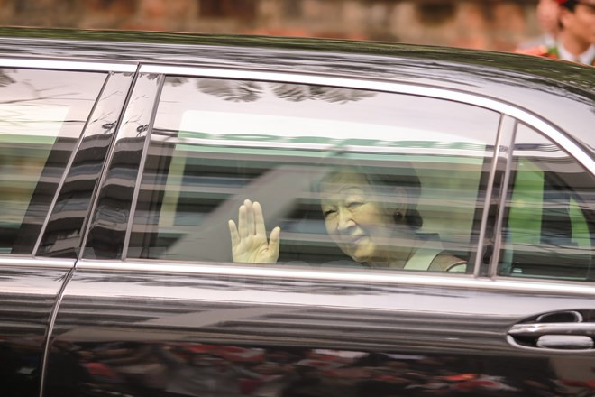 Jeudi matin, l'Empereur Akihito et son épouse Michiko ont visité le Temple de la Littérature, dans le cadre de leur visite d'Etat au Vietnam du 28 février au 5 mars. De nombreux habitants de la capitale sont venus très tôt pour les saluer.