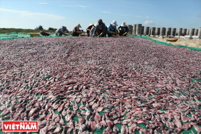Le village de séchage au soleil des fruits de mer de Sa Huynh est le noyau du métier de traitement des produits aquatiques de la province centrale de Quang Ngai.
