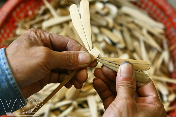 Les gens de la commune de Thach Xa, district de Thach Thât, Hanoi, réalisent des libellules animées à partir du bambou contribuant à diversifier le trésor des jouets traditionnels du peuple vietnamien.