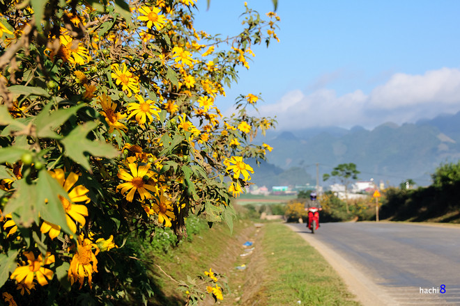 Les tournesols sauvages jaunes signalent l’arrivée de l'hiver sur ce haut plateau. Photo: Hachi8