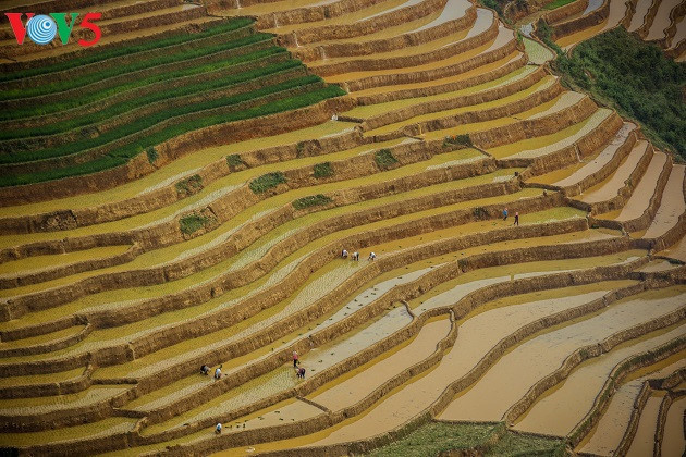 Quand on parle des rizières en terrasse de Mu Cang Chai, on pense tout de suite au jaune du riz mûr qui s’étend à l’infini. Mais à la saison du repiquage, vous serez tout aussi émerveillés.