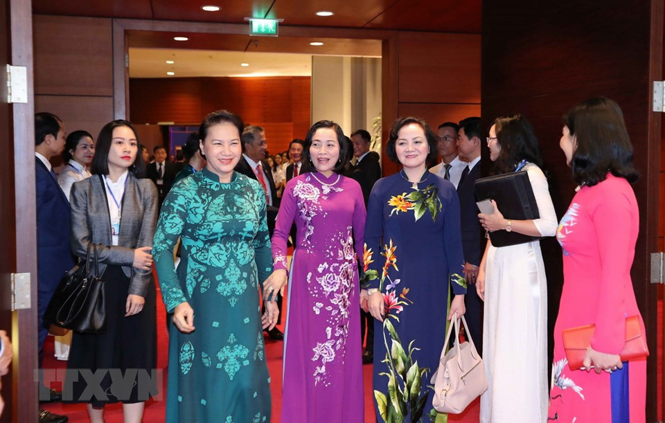 La présidente de l'AN Nguyên Thi Kim Ngân et les délégués lors de la cérémonie d'ouverture de la 14e Assemblée de l’ASOSAI.