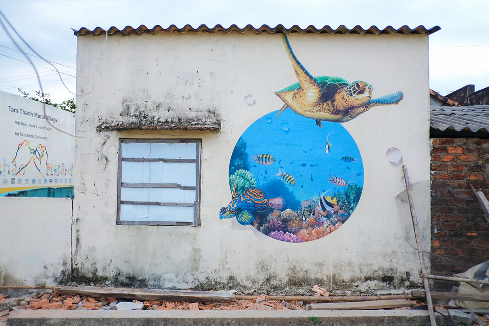 Au village de pêcheurs de Tam Thanh, dans la province centrale de Quang Nam. Avec ses fresques murales peintes dans le cadre d'un projet d’échange artistique communautaire Corée du Sud – Vietnam, il est d'autant plus attractif. Une centaine de maisons ont servi de support aux artistes. Grâce au talent de volontaires sud-coréens, Tam Thanh est devenu le premier village de fresques murales du Vietnam. Tam Thanh, le village des fresques murales