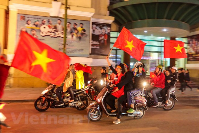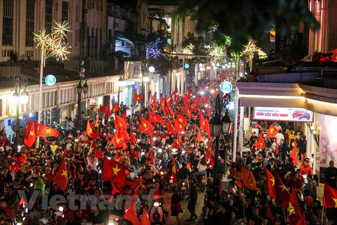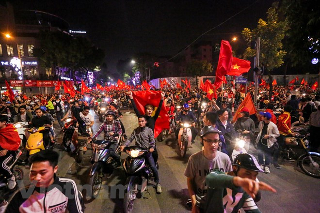Des milliers de supporters ont inondé les rues de Hanoï pour fêter la victoire l'équipe U23 Vietnam face au Qatar qui lui a permis de se qualifier pour la première fois en finale du Championnat d’Asie U23.